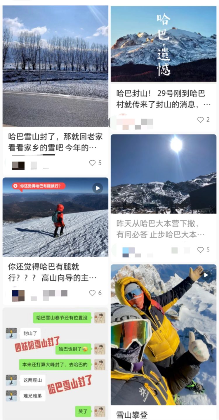 网友反映哈巴雪山封山。网络图