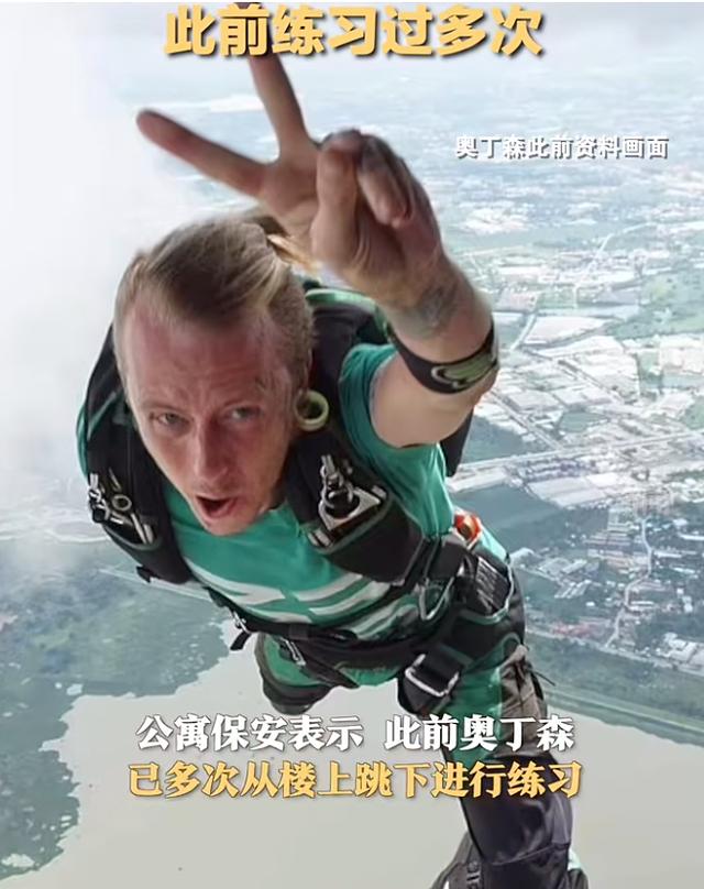 据报道,警察在事发后赶到现场,在他身上发现一个降落伞,但没有完全打开。公寓保安表示,此前奥丁森已多次从楼上跳下进行练习,对楼下的行人构成威胁。目前警方正在进一步调查此事。报道称奥丁森曾在世界各地进行跳伞,经营一家“空中摄影”公司,为客户提供私人跳伞体验。