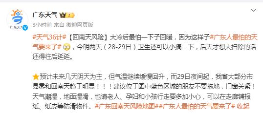 这里还要特别说下,广东人最怕的天气也要来了!明天夜间开始广东大部分市县雾和回南天趋于明显,大家尽量先不要拖地,门窗关紧,天气潮湿,地面湿行走要多加小心,可以在走廊铺报纸、纸皮等防滑物件。