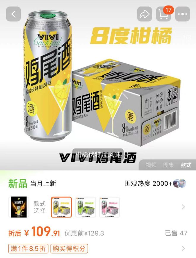 值得一提的是,就在本月中旬,东鹏饮料刚刚宣布推出酒精度数为8度的新品“VIVI鸡尾酒”,包括柑橘、白桃和青提三种口味。