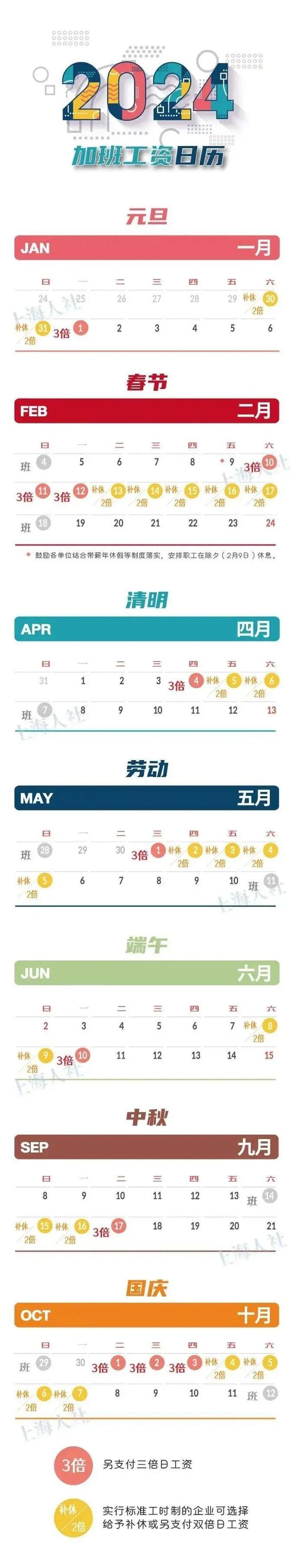 另外,今年要在节假日加班的小伙伴,这里有一份“加班工资版”日历,可以收藏哦。