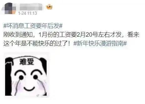 近日,一位网友发帖称,自己刚收到公司通知,表示1月份的工资得到年后才发。