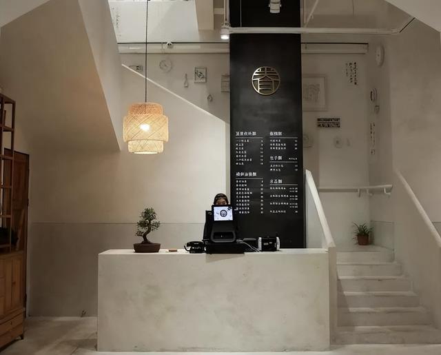 形成反差的是,桃园眷村的装修采用黑白色调,配合侘寂风的装修,远远看上去全然不像一家卖豆浆油条的早餐店,更像是一间现代艺术馆。