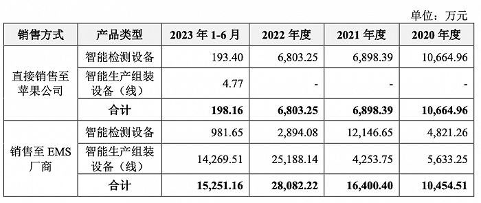 2020年-2022年公司向苹果公司销售收入(来源于苹果公司直接订单)占当期营业收入的比例分别为44.71%、23.48%和18.41%,各期最终用于苹果产品的销售收入(包括来源于苹果公司直接订单以及来源于苹果公司EMS厂商的订单)占当期营业收入的比例在80%以上。