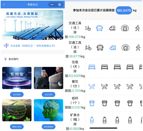 据悉,会议还采用电子化参会认证及会议流程公示,并向与会者发布了绿色低碳生活倡议书,利用自主设计的零碳会议小程序,进行低碳签到及个人碳排放数据核算,使与会人员可深度参与并了解减碳活动。