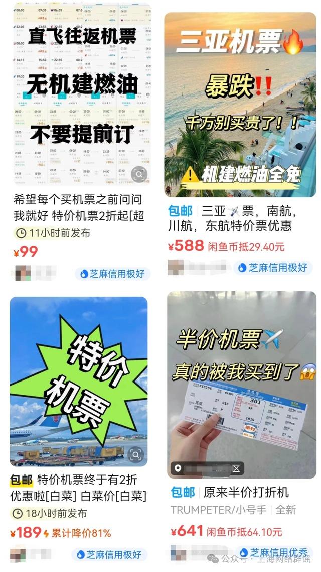 近日,闲鱼等二手交易平台出现大量售卖“超低价机票”的代理商,有的声称“无机建和燃油费”,最高折扣票价只有航司官网价格的2折,远比第三方订票平台(以下简称“OTA平台”)报价低。