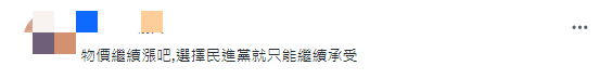 还有岛内网民评论道,“物价继续涨吧,选择民进党就只能继续承受”。
