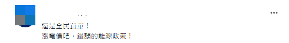 “还是全(台湾)民(众)买单!涨电价吧,错误的能源政策!”