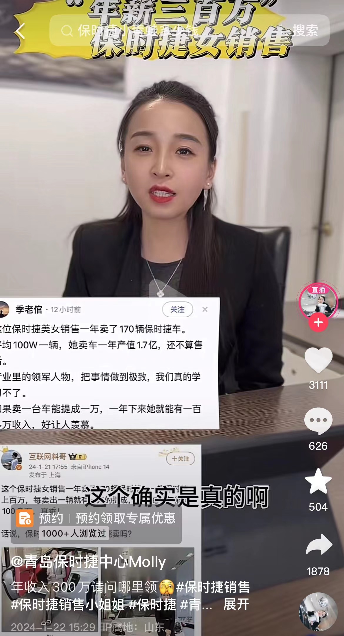 1月24日,“山东女销售一年卖出170辆保时捷”的话题登上热搜。