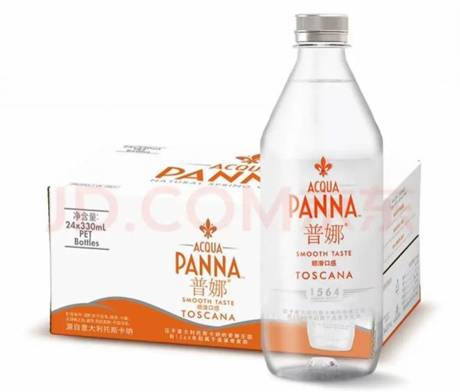 公开资料显示,普娜(Acqua Panna)是定位高端市场的饮用水品牌,2020年进入中国市场。该品牌起始于1954年,水源地是意大利佛罗伦萨的托斯卡纳山脉。