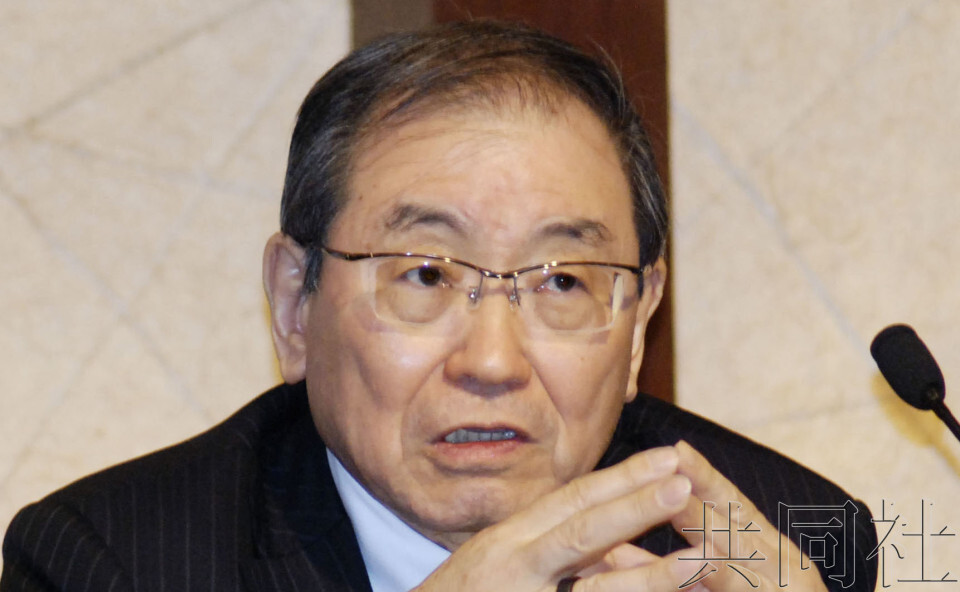 1月18日下午,经团联会长十仓雅和在大阪市举行记者会。图自日本共同社