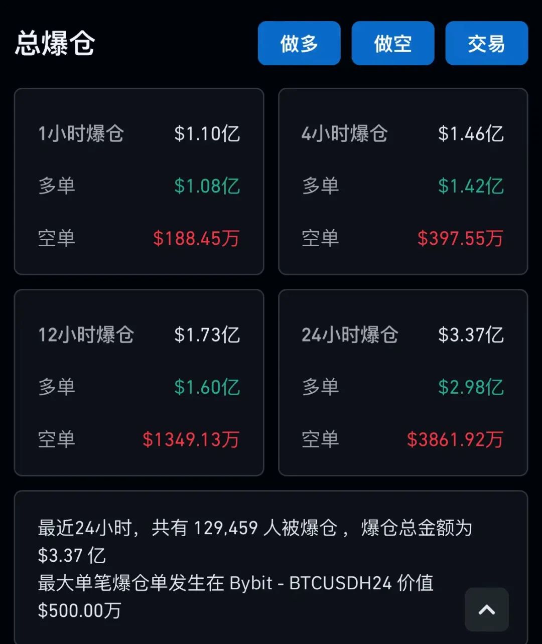 衍生品交易方面,CoinGlass数据显示,截至1月23日21时,24小时虚拟货币全网爆仓人数近13万,爆仓总金额高达3.37亿美元(约合人民币24.2亿元)。其中多单爆仓2.98亿美元,空单爆仓超3860万美元。