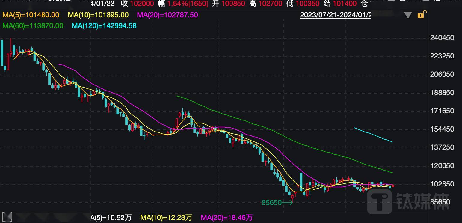 历经一年的下行周期,锂行业集体步入寒冬,2024年新年伊始,依然未有好转迹象。上海钢联数据显示,1月23日,国内电池级碳酸锂均价跌至9.75万元/吨,已经在10万元/吨关口蹉磨数日。