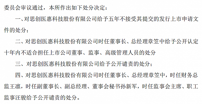 深交所对思创医惠及相关人员的纪律处分,图源:公司公告