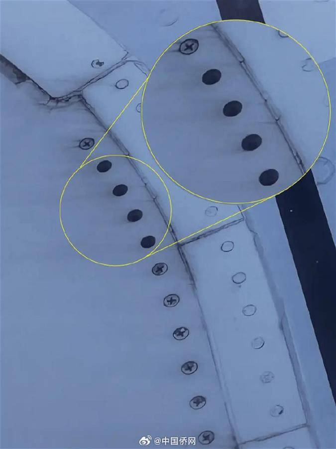 一名英国游客在机场等待航班起飞时,发现机翼上有4个紧固件缺失(图片来源:中国侨网)