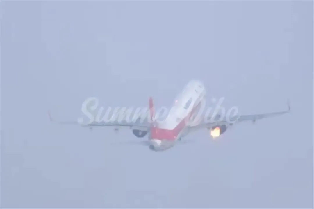 飞机右侧发动机喷射火焰(图源:抖音网友SummerVibe_97)