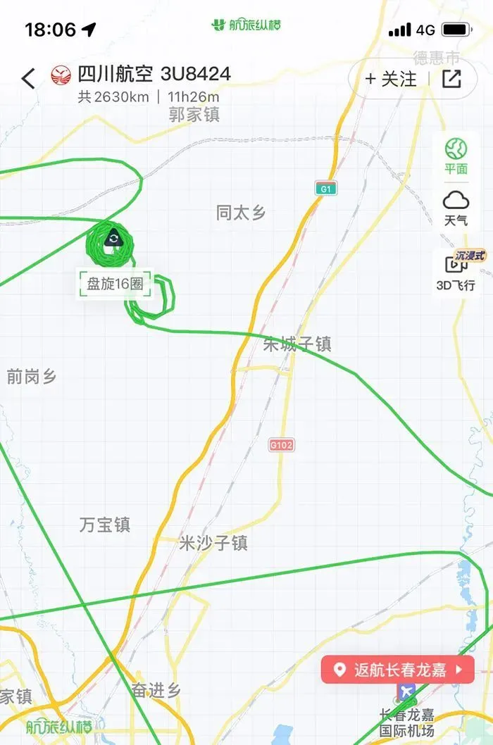 此外,出现故障的飞机曾在长春上空盘旋16圈,盘旋时间超过1小时。