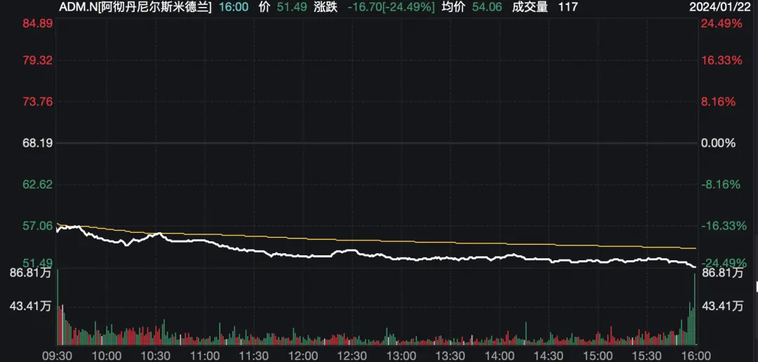 ADM大跌超24% 市值蒸发超600亿元