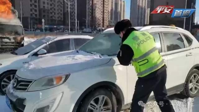 灭火结束后,交警清理了事故现场,撒了融雪剂,道路恢复了通行。同时也向车主了解了起火的原因。