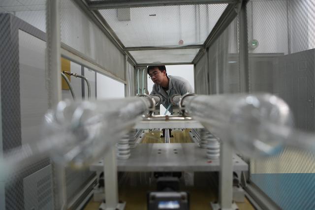 2009年8月2日,内蒙古一家锗业科技公司的技术人员在调试设备。新华社记者 邢广利/摄