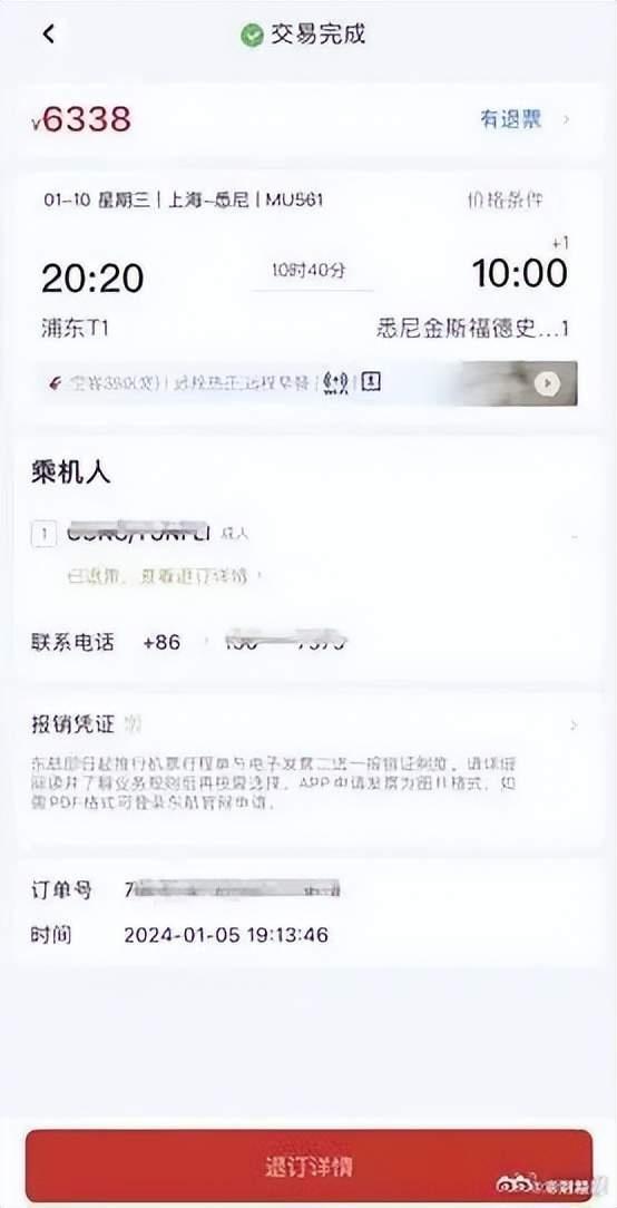 近日,上海的龚先生遇到了一件糟心事。龚先生在东航App上购买了一张1月10日从上海飞往澳大利亚,价值6338元(含税)的机票。然而,在付款1分钟后,龚先生再次核对日期时,发现自己买错了日期。随后,龚先生立即联系东航客服,工作人员表示,客票上若带有“不可退票”的字样,只能退还除了燃油附加费之外的其他税费,无法进一步申诉。