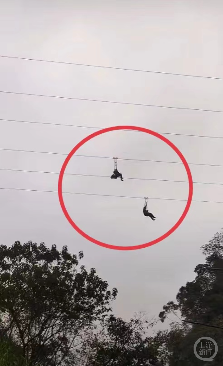 两名游客悬在高空。图片来源/视频截图