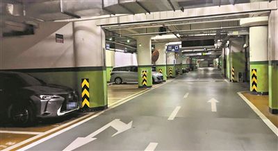 在非高峰时段,某小区的地下车库里依然灯火通明。