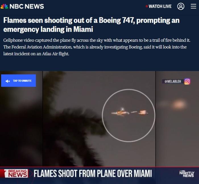 据报道,18日晚间,阿特拉斯航空公司的一架波音747型货机从迈阿密国际机场起飞后不久便遭遇发动机故障,随后在同一机场紧急迫降。