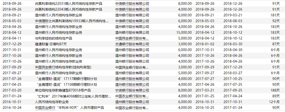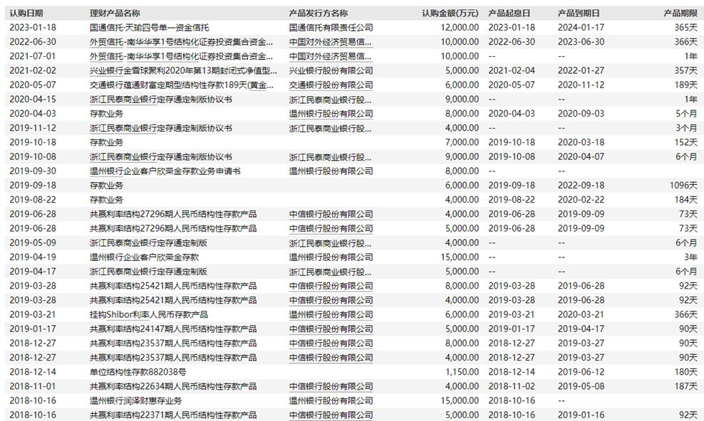 最新披露的公告中,英洛华还强调“除上述信托产品外,公司未购买其他理财产品。”而财联社记者整理发现,英洛华此前可谓为“理财狂魔”,Wind数据显示,该公司自2016年起便热衷购买理财产品,累计曾购买47只,几乎每年都会购入,产品类型包括信托、银行理财、结构性产品、存款等等,认购金额均在千万元以上。
