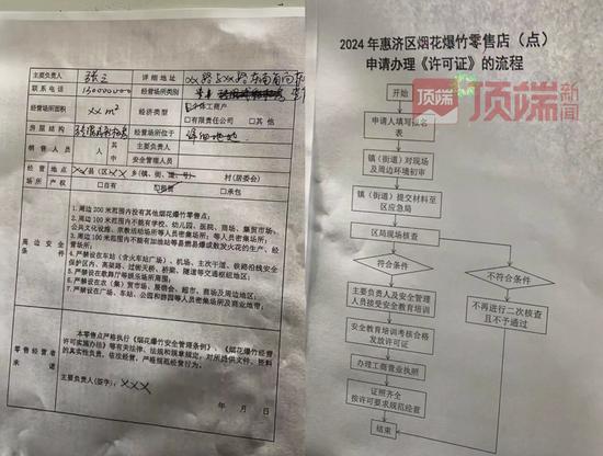 18日,有知情人向顶端新闻记者提供一份2024年惠济区烟花爆竹零售店申请办理《许可证》流程表、报名表,但顶端新闻记者检索后,也未发现该区在近日线上曾发布关于开放办理烟花爆竹经营零售许可的最新通知,该表格是否属实?