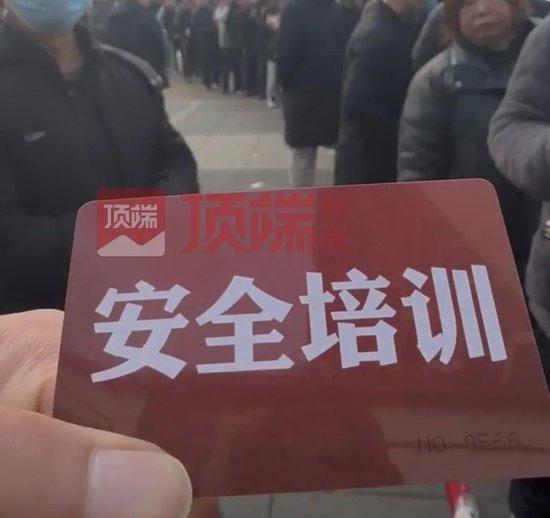 因排队现场人数众多,有工作人员拿喇叭引导排队,发放培训卡,郑先生说:“报名成功是第一步,随后要缴费600元培训费,等待培训通知,现场工作人员告诉我们,负责人和安全人都通过培训后还需要进行考试,考试通过后才可以着手准备摊位。”