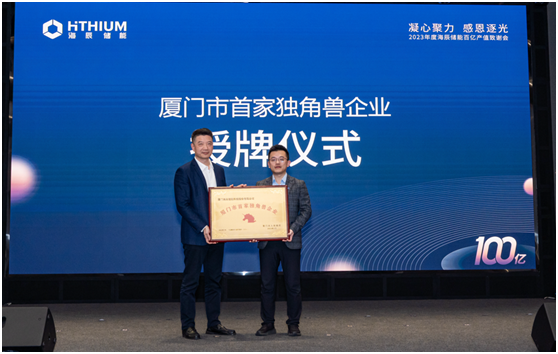 1月17日,以“凝心聚力感恩逐光”为主题的“2023年度海辰储能百亿产值致谢会”在海辰储能厦门总部国际会议厅举行。厦门市人民政府向海辰储能授牌“厦门市首家独角兽企业”,厦门市火炬高新区管委会及同安区区委、区政府分别向海辰储能颁发“百亿规模企业”和“同安区首家百亿产值企业”牌匾,对其高质量快速发展给予高度肯定。