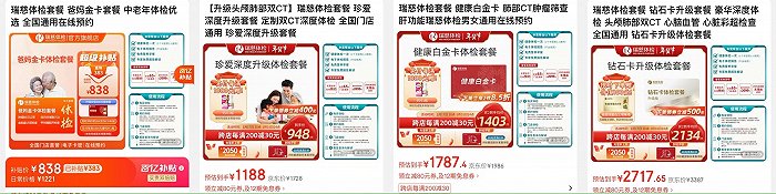 并且,据各大电商平台,当前售卖的各类体检项目套餐也是远高于500元的,包括瑞慈医疗自己售卖的套餐。