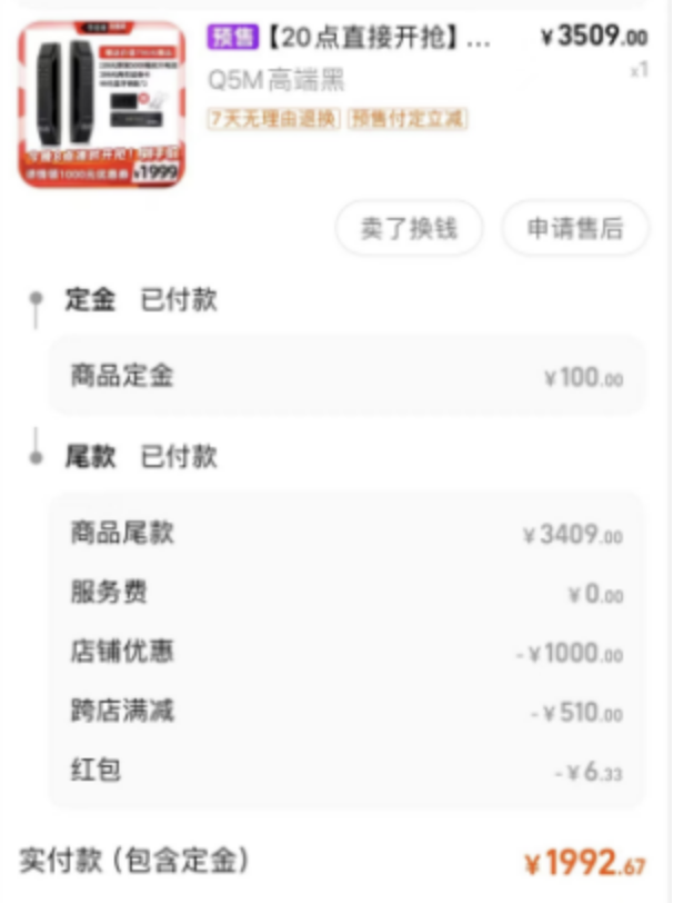 刘先生家使用的是德施曼Q5M智能门锁。今年8月,他发现执行反锁动作后再开锁,会不时出现锁舌部分突出,缩不回去的情况。他必须要使用机械钥匙开关才能避免这个问题。也就是说德施曼的智能门锁不能很好地控制大门锁舌的伸缩。