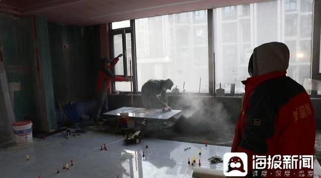 切割瓷砖时灰尘太大,谢恩松的父亲将窗户打开通风 图据海报新闻