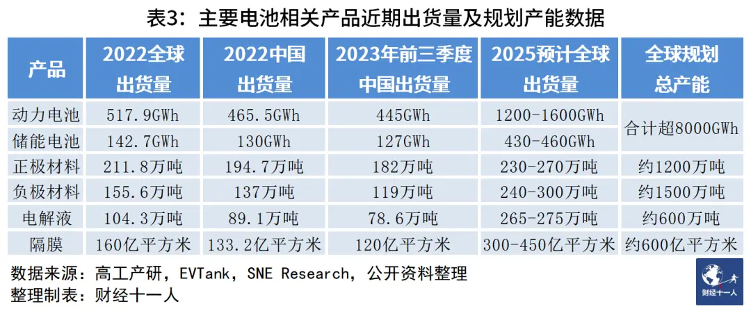 这一轮动力电池产业的爆发式增长从2020年开始,早期因为产能不足,导致产业链各环节价格暴涨,进而推动产业内外的资本蜂拥而上,扩大产能。《财经》根据公开资料统计, 以2022年的出货量为基准,规划产能最少是其5倍,相较于2025年的预测需求,产能过剩至少两倍。