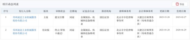 公开信息显示,恒达智控受理于2023年9月25日,2023年10月26日进入问询环节,但目前并未看到公司对问询作出回复,2023年12月31日该公司因财报更新而中止。恒达智控的保荐机构系中信建投,融资金额25亿元。