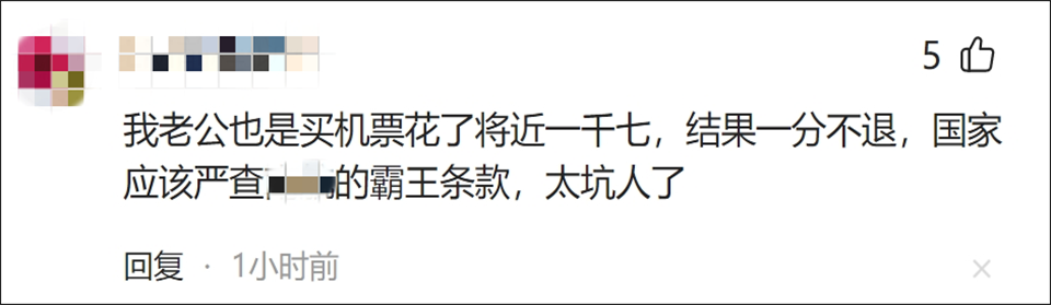 此前有媒体报道,有网友称,本计划一家三口出游,在购票平台购买了3张经济舱机票。起飞前72小时到48小时间,因天气原因计划有变,他在平台上申请退票,不料总花费为4244元的机票钱,却只收到了934元的退款。