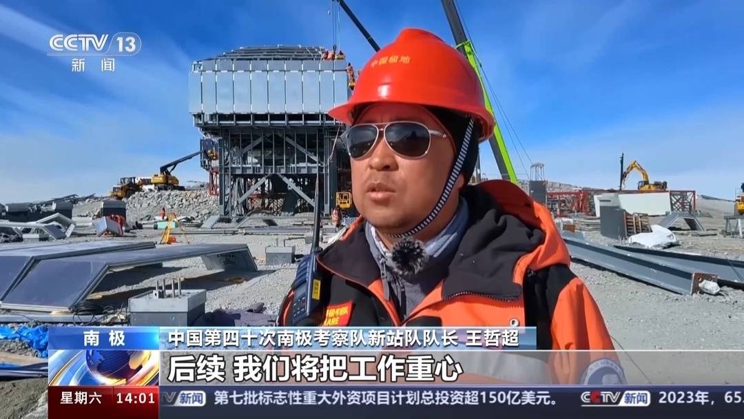 中国第四十次南极考察队新站队队长 王哲超:后续,我们将把工作重心转移至外墙板的安装、室内配套设施以及后勤中心结构安装,我们将以更加饱满的热情,按计划完成罗斯海新站的建设任务。