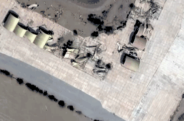 △也门海岸附近设施遭美英空袭前后对比