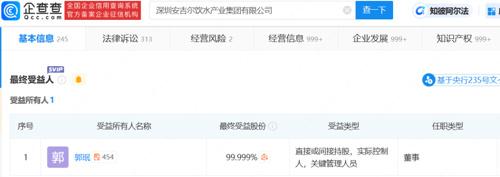 不仅如此,通过控制安吉尔饮水集团和乐百氏两家公司超95%股权,郭珉还掌控了国内两大知名饮用水品牌。
