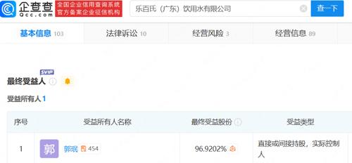 除了间接参股天药集团,郭珉还通过上述两大投资平台,在深圳安吉尔饮水产业集团享有99.999%的最终受益股份,在乐百氏(广东)饮用水有限公司和乐百氏(广东)饮品有限公司都享有96.9202%的最终受益股份,亦即掌控了国内两大知名饮用水品牌。
