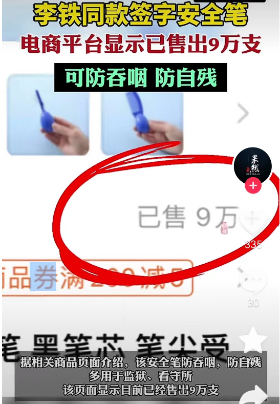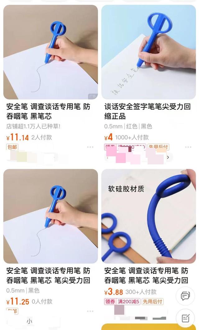 据齐鲁晚报,这是审讯犯罪嫌疑人时专用的笔,名叫“安全笔”。其“短小精悍”,安全可靠,笔尖回缩,防刺穿,防吞咽。据电商平台显示,已售出9万只。