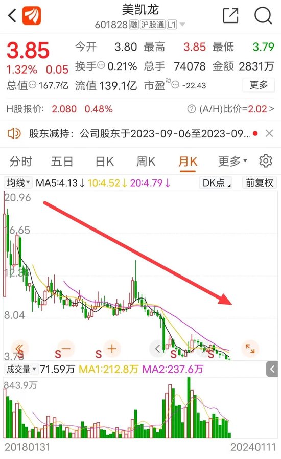 截至1月11日收盘,美凯龙股价为3.85元/股,市值为168亿元,较高峰时缩水81%。截至2023年三季度末,美凯龙有股东6.15万户。