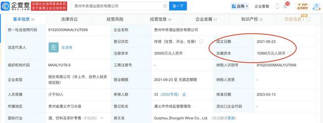 企查查显示,中赤酒业成立于2021年9月23日,注册资本为3亿元,实缴资本1.1亿元,经营范围包括生产、销售酒类等。