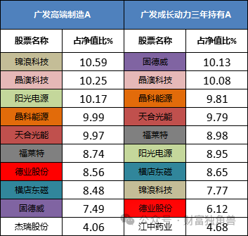 其中,广发成长动力三年持有混合前十大重仓股与广发高端制造基金持仓重合度高达90%,主打一个单押到底。