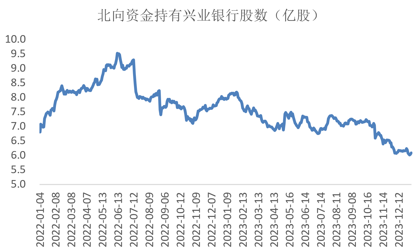 另据Wind数据,截至今年1月4日,北向资金对兴业银行的持股数已经下降至了6.8亿股。