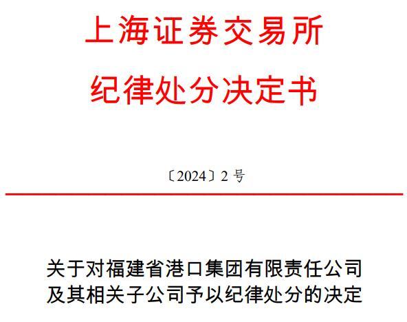 上交所决定对福建港口集团予以公开谴责,并对福建港口集团及其实际控制的四家子公司名下证券账户实施限制交易6个月的纪律处分,即自2024年1月8日至2024年7月7日不得买入和卖出在上交所上市交易或挂牌转让的全部证券。