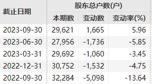 截至2023年9月30日,新亚制程共有2.96万户股东。
