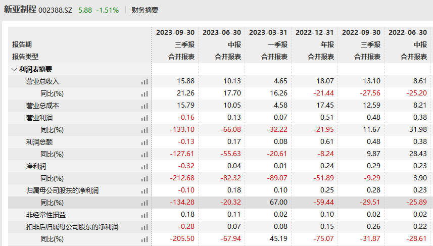 从业绩表现来看,近年来新亚制程的净利润大幅下滑,2023年前三季度由盈转亏,期间实现归母净利润为-974.85万元,同比下滑134.28%。